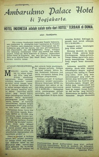 Dahulu memiliki prinsip menentang kapitalisme dengan membuat bangunan-bangunan mewah yang semata untuk hiburan kapitalis. Namun, seiring berjalannya itu merupakan kebutuhan pariwisata dalam meningkatkan perekonomian bangsa. Ambarukmo palace Hotel merupakan salah satu proyek pembangunannya yang terletak pada Pesanggrahan Ambarukmo milik Kesultanan Jogjakarta yang terletak di pinggir jalan Sala Jogja, 6 km dari pusat kota Jogjakarta.