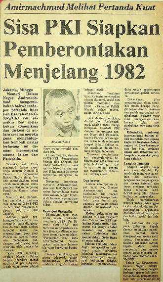 Menteri Dalam Negeri, Amirmachmud, mengemukakan bahwa terdapat pertanda kuat sisa-sisa tahanan G30S/PKI kini semakin giat melakukan komunikasi dan diskusi di antara sesama mereka guna menghidupkan kembali partai terlarang itu.