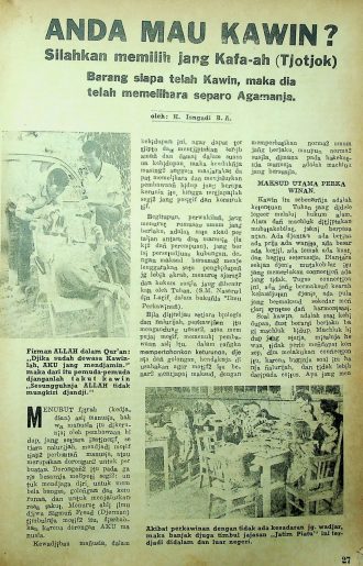 Apabila anda mau kawin maka pilihlah yang Kafaah atau dalam artian cocok. Menurut agama, barang siapa yang telah kawin maka dia telah memelihara separuh agamanya. Dalam Al-Qur’an pun jangan takut kawin karena Allah akan menjamin itu. Namun, carilah yang cocok karena akibat di realitanya akan banyak percekcokan dan timbul yayasan yatim piatu untuk menitipkan anak-anaknya.
