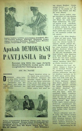 Demokrasi dalam bahasa asing ditulis democracy dari Yunani demokratia. Asal dari kata demos yaitu rakyat dan kratos ialah kekuasaan atau kekuatan. Di Indonesia demokrasi ciptaan Ir. Soekarno yang dikenal yakni demokrasi terpimpin tetapi hal itu tidak cocok karena diktatoris. Maka dibuatlah demokrasi baru yakni demokrasi pancasila.