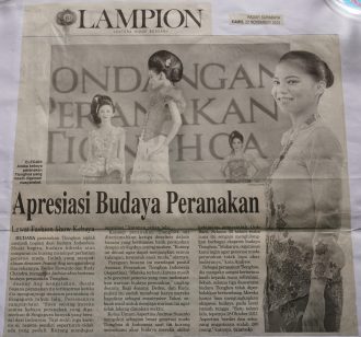 Budaya peranakan Tionghoa sudah menjadi bagian dari budaya Indonesia, salah satunya adalah kebaya peranakan. Lewat fashion show kebaya peranakan, desainer Jeanny Ang beserta kedua rekannya ingin mengenalkan warisan budaya peranakan ini dengan konsep baru yang dapat menjangkau semua kalangan.