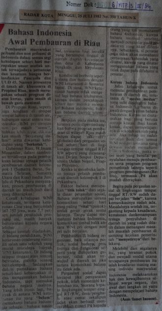 Proses pembauran masyarakat pribumi dan non pribumi di provinsi Riau masih berada di bawah garis minimal. Hubungan sosial masyarakat pribumi dan non pribumi di daerah ini dapat dikatakan berjurang dalam serta diwarnai kehidupan yang “berkotak”. Jalan keluar untuk meningkatkan pembauran di daerah ini adalah dengan mengadakan kursus bahasa Indonesia bagi yang berusia remaja ke atas. Jika tahap ini sudah berjalan baik dan semua WNI non pribumi sudah memahami bahasa Indonesia, maka penyuluhan menuju pembauran serta program-program pemerintah lainnya akan mudah diterapkan.