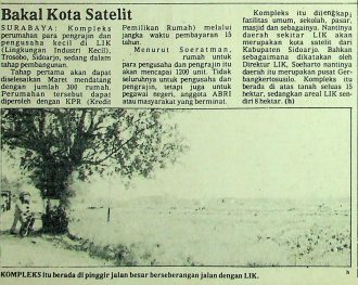 Kompleks perumahan para pengrajin dan pengusaha kecil di LIK (Lingkungan Industri Kecil) Trosobo, Sidoarjo rencananya akan disediakan 1200 unit rumah untuk pengusaha, pengrajin, pegawai negeri, anggota ABRI, dan masyarakat yang berminat.