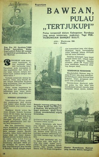 Pulau Bawean merupakan pulau terpencil yang berada dalam Kabupaten Surabaya yang aman, tentram, dan makmur. Namun, hubungan dengan wilayah yang lainnya sangat sulit.