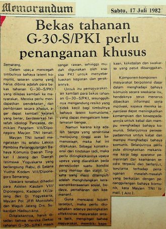 Bekas Tahanan G30S/PKI Perlu Penanganan Khusus