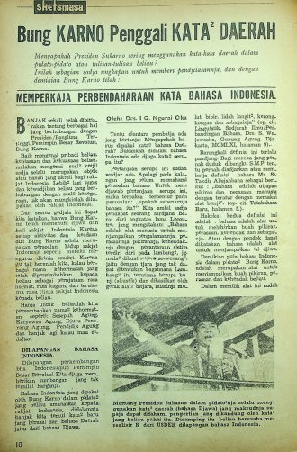 Bahasa adalah alat manusia untuk menyampaikan pengalaman dan perasaannya. Dalam pidato Bung Karno, Bahasa Indonesia yang dipakai banyak ditemukan kata-kata baru yang berasal dari bahasa daerah.
