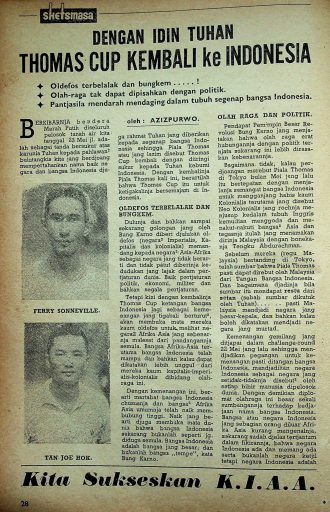 Piala Thomas Cup kembali ke Indonesia!! Yang berarti kemenangan ketiga kalinya (berturut-turut) atas olahraga badminton.