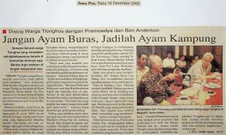 “Orang Tionghoa jangan hanya menjadi ayam buras, tetapi jadilah ayam kampung”, tutur pengusaha Sidartha Adimulya dalam pertemuan warga Tionghoa Surabaya di Hotel Majapahit, 16 Desember 2002. Pertemuan diisi dengan dialog bersama sastrawan Pramoedya Ananta Toer dan Indonesianist asal Ben Anderson.