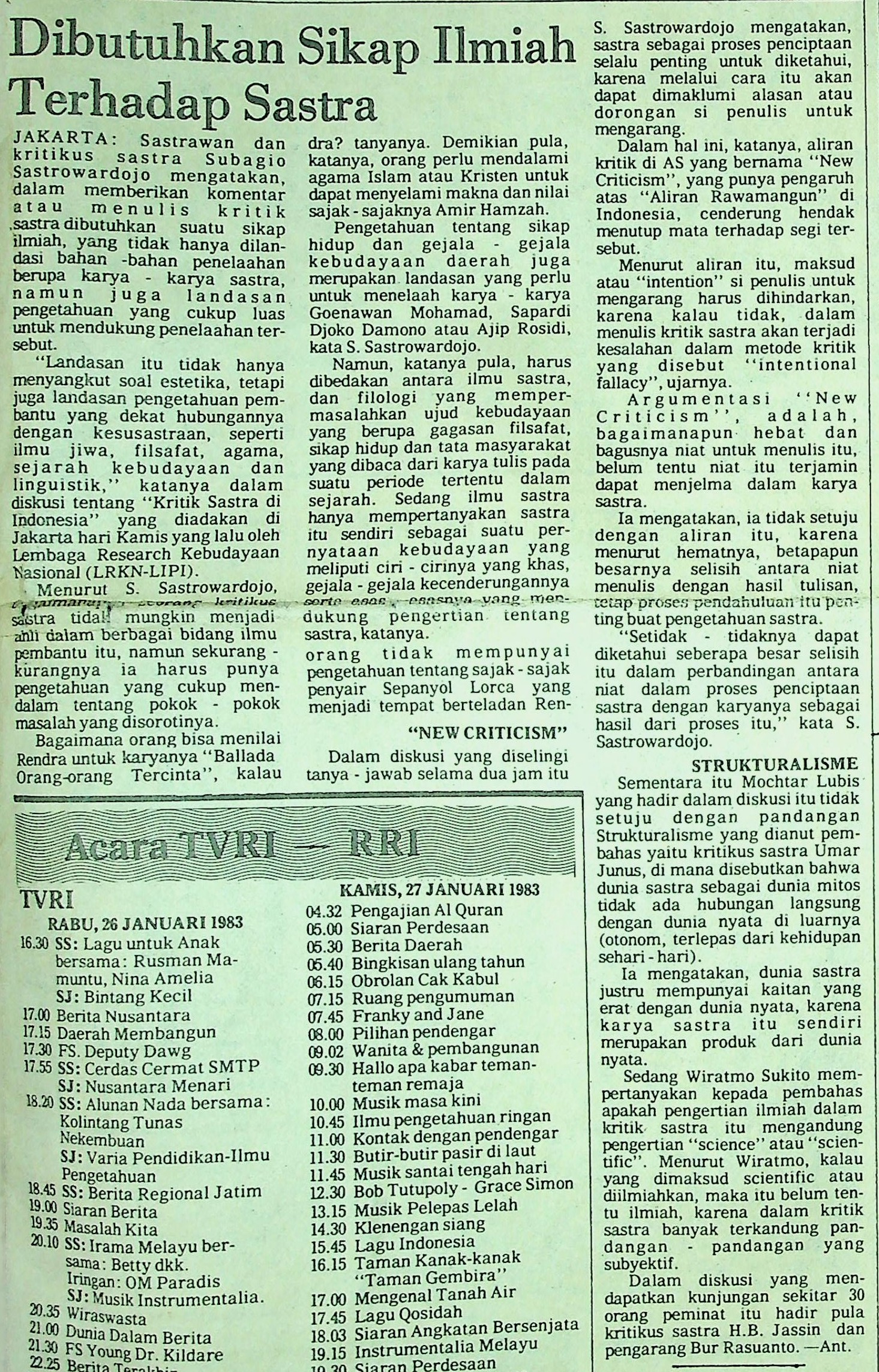 Satrawan dan kritikus sastra Subagio Sastrowardojo mengatakan dalam memberikan komentar atau menulis kritik sastra dibutuhkan suatu sikap ilmiah.