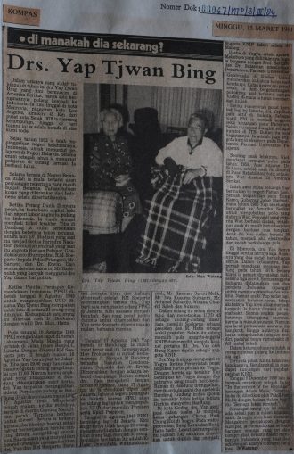Dalam usianya yang sudah 70 tahun, drs. Yap Tjwan Bing (politikus keturunan Tionghoa-Indonesia) kini bermukim di Amerika Serikat. Hanya satu keinginannya, yaitu pulang kembali ke Indonesia. Ia kini tinggal di kota Monrovia, pinggiran kota Los Angeles. Sejak 1976, ia diserang kelumpuhan, hingga di hari tuanya ini, ia selalu berada di atas kursi roda. Berulangkali, ia mendapat kunjungan dari pejabat- pejabat KBRI.