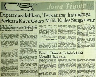 Perkara kayu jati gelap yang diduga milik Kepala Desa Senggowar kembali dipermasalahkan, perkara yang sudah terungkap sejak 6 oktober 1981 sampai artikel ini ditulis belum juga dibawa ke persidangan peradilan