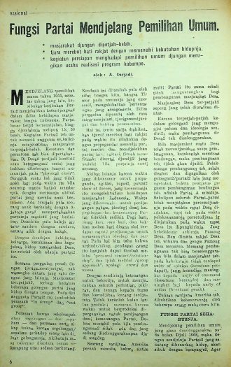 Fungsi partai menjelang pemilihan umum yaitu tidak memecah belah masyarakat, tetap mempertahankan persatuan, merebut hati rakyat dengan cara lain seperti memenuhi kebutuhan hidupnya, memberikan kegiatan persiapan menghadapi pemilihan umum dan tidak boleh merugikan usaha realisasi program kampanye.