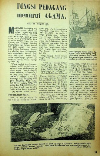 Agama Islam sangat mendukung dan menghargai pedagang karena mereka berjuang dan beramal di jalan Allah. Selain itu, menjadi pedagang harus memiliki modal seperti jujur dan dapat dipercaya sehingga itu lah yang disukai Allah. Dalam memperbaiki perekonomian rakyat pun diperlukan perdagangan dengan menyalurkan barang-barang antar wilayah.