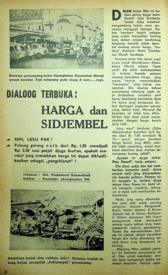 Masyarakat sangat kesulitan dengan ekonomi. Semua harga pada naik termasuk potong goreng dan nasi pecel. Hal itu membuat rakyat menghemat sehingga penumpang becak pun sepi, padahal biasanya di pangkalan jembatan merah itu ramai penuh berebut.