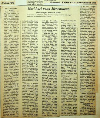 Sambungan catatan tulisan hasil wawancara dengan Sarwo Edhie dan tiga pelaku di hari bersejarah.
