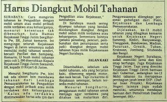 Soegiharto Pw, SH, selaku Humas Kejaksaaan Tinggi Jati mengatakan bahwa tidak boleh mengirim tahanan ke pengadilan dengan mobil umum dan mobil pribadi. Hal ini menjadi aturan yang sudah berlaku dan harus ditenggakan, mengingat seluruh Kejaksaan Negeri di Jatim memiliki mobil tahnanan sendiri.