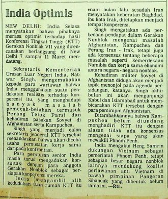 India menyatakan bahwa pihaknya merasa optimis terhadap hasil Konferensi Tingkat Tinggi (KTT) Gerakan Nonblok VII yang direncanakan berlangsung di New Delhi 7-11 Maret 1983.