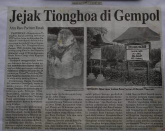 Salah satu tetenger atau saksi sejarah Perang Patjinan terdapat di Desa Carat, Kecamatan Gempol, Pasuruan. Di kawasan perkebunan tebu itu terdapat bangunan cagar budaya yang dikenal sebagai Raos Pacinan. Ada dua arca besar yang terbuat dari batu. Namun, kondisi arca di Raos Pacinan itu sudah lama rusak. Setelah dikelola Dinas Purbakala, kondisi Raos Pacinan mulai jauh lebih terawat.