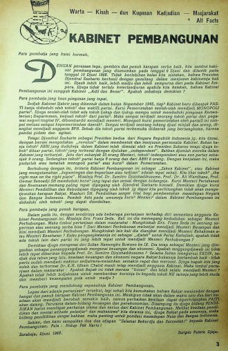 Pada kabinet pembangunan ini terdiri dari berbagai macam golongan sehingga tidak hanya diduduki oleh tokoh dan wakil partai saja. Maka dari itu, rakyat menyambut dengan hangat dan penuh harapan kabinet pembangunan ini. Meskipun tidak cepat berubah dalam satu atau dua hari.