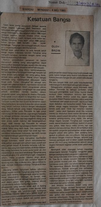 Usaha penyatuan bangsa sesama warga negara Indonesia telah lama berlangsung. Bila sebelum tahun 1966 masih terdapat sekolah khusus untuk orang Tionghoa dan terdapat surat kabar berbahasa Tionghoa, maka sejak tahun 1966 penghapusan sekolah itu telah berlaku dan koran tersebut hanya tinggal satu. Bahkan, keturunan Tionghoa sebagian besar mengalihkan namanya dengan nama yang biasa dipakai orang Indonesia. Namun, pada kenyataanya pembauran semacam ini belum dapat mewujudkan kesatuan bangsa.