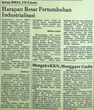 Ketua BMAI (Badan Musyawarah Asosiasi-Asosiasi Industri) mengungkapkan bahwa APBN yang disampaikan oleh presiden dirasa cukup berat karena anggaran sektor industri cukup besar dan adanya tunjangan kuat pada sektor pendididkan dan pertanian memberikan harapan besar bahwa industrialisasi dapat mencapai pertumbuhan tidak kurang dari 15 persen.