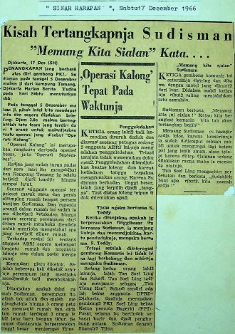 Penangkapan gembong PKI, yaitu Sudisman berhasil dilakukan pada tanggal 5 Desember di Jalan Kampung Tomang, Jakarta. Operasi penangkapan ini disebut “Operasi Kalong”.