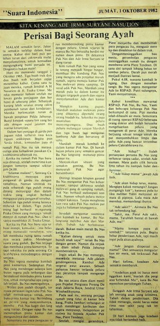 Kita Kenang Ade Irma Suryani Nasution: Perisai bagi Seorang Ayah