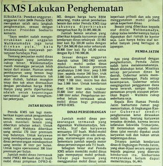 Sesuai dengan amanat Presiden Soeharto, Pemda KMA melakukan penekanan anggaran-anggaran rutin sebagai salah satu langkah penghematan, hal ini berdampak pada penyesuain operasional pada jatah bensin.