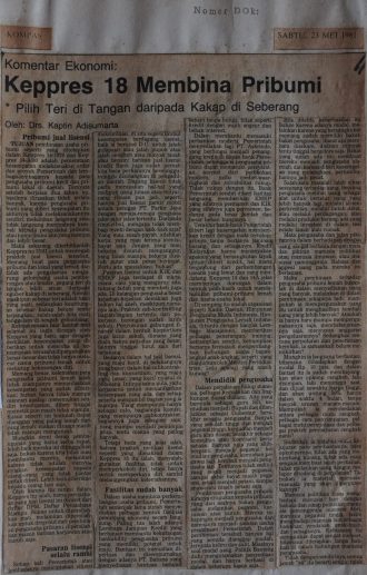 Diterbitkannya Keppres No 18/81 bertujuan untuk mencegah praktik jual lisensi yang dilakukan oleh pengusaha pribumi kepada pengusaha pribumi atau non-pribumi yang mampu dan lebih besar. Bagi para pengusaha pribumi yang lemah dan tidak ada pengalaman, menjual proyek pemerintah dan lembaga-lembaganya merupakan suatu jalan yang aman.