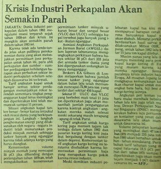Dunia industri perkapalan selama tahun 1982 mengalami resesi terparah dan krisis ini mungkin akan semakin parah dalam tahun 1983.