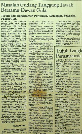 Pembangunan gudang gula baru bukan merupakan tanggung jawab Bulog saja tapi merupakan tanggung jawab bersama dari Dewan Gula Indonesia yang melibatkan Departemen Pertanian, Keuangan, Bulog, dan pabrik gula.