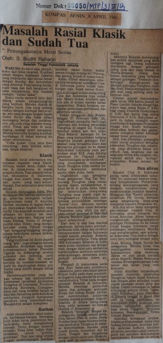 Masalah rasial sebenarnya merupakan masalah yang klasik tetapi masalah tersebut, khususnya di Indonesia, hingga kini masih hangat. Kerawanan rasial peranakan Tionghoa sudah bukan menjadi peristiwa rahasia lagi. Peristiwa Bandung, Surabaya, Ujungpandang, dan yang terakhir terjadi di Sala dan Semarang sungguh merupakan peristiwa yang memprihatinkan dan sangat kompleks.