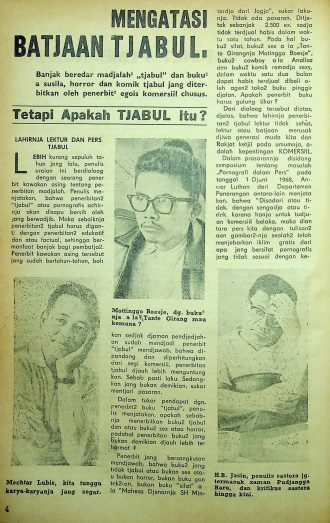 Banyak beredar majalah dan buku-buku asusila, horror, dan komik cabul yang diterbitkan oleh penerbit yang egois dan hanya mementingkan komersil. Dalam mengatasi hal tersebut, pemerintah bertindak tegas dengan melarang, mencabut izin terbitnya, dan memberantas buku cabul.
