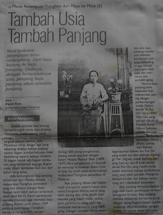 Setelah periode baju kurung, berkembanglah mode baju panjang yang terbuat dari bahan katun atau sutra Tiongkok. Warna terang dan ceria dipilih oleh mereka yang masih muda, sedangkan perempuan yang lebih tua menyukai warna-warna lebih gelap. Dengan semakin bertambahnya usia, baju panjang mereka juga semakin bertambah panjang, terkadang hingga hampir mencapai mata kaki dan warnanya pun semakin gelap.