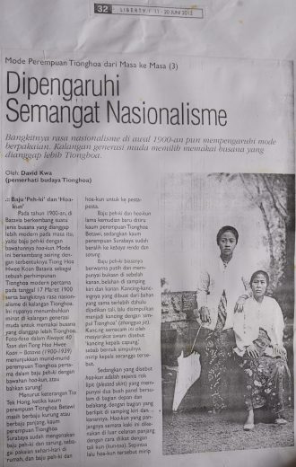 Terbentuknya Tiong Hoa Hwee Koan Batavia sebagai sebuah perhimpunan Tionghoa Modern pertama pada tanggal 17 Maret 1900 telah menumbuhkan minat di kalangan generasi muda untuk memakai busana yang dianggap lebih Tionghoa. Jenis busana tersebut adalah baju peh-ki dengan bawahannya hoa-kun.