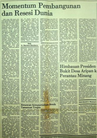 Dalam rubrik ini Harmen Batubara memaparkan bagaimana resesi dunia tahun 1982 berakibat di sektor ekonomi. Harmen juga menjelaskan beberapa kondisi yang akan muncul seandainya Indonesia masih terus melakukan pembangunan, meskipun secara sadar terdampak efek resesi dunia.