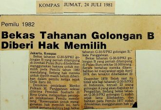 Bekas tahanan G30S/PKI golongan B yang pernah ditampung di Inrehab Pulau Buru diperbolehkan menggunakan haknya untuk memilih pada Pemilu tahun 1982.