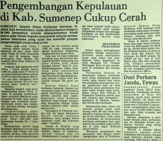 Kepala Dinas Perikanan Sumenep, H. Abdul Azis menyatakan, sejak dikeluarkanya kredit sistem pola bimas kepada masyarakat nelayan penunjukkan kemajuan yang nyata dan memiliki prospek pengembangan yang cukup cerah