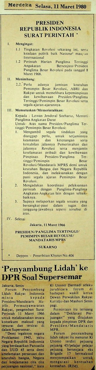 Forum Penyambung Lidah Rakyat Indonesia minta kepada Presiden/Mandataris Majelis Permusyawaratan Rakyat, pengemban surat Perintah 11 Maret 1966 untuk melaksanakan secara konsekuen maksud yang tersurat dan tersirat di dalam Supersemar.