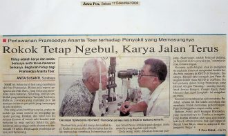Fisik boleh renta tetapi semangat berkaryanya belum padam. Dengan segala keterbatasannya, pria yang telah melahirkan lebih dari 50 novel itu kini berjuang menyelesaikan ensiklopedia Indonesia. Pramoedya benar-benar tak ingin penyakit yang mendera membuat dirinya seperti di penjara. Sebagai bentuk perlawanan lain terhadap penyakitnya, dia tetap merokok.