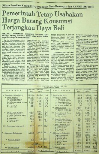 Pidato Presiden Ketika Menyampaikan Nota Keuangan dan RAPBN 1983-1984: Pemerintah Tetap Usahakan Harga Barang Konsumsi Terjangkau Daya Beli