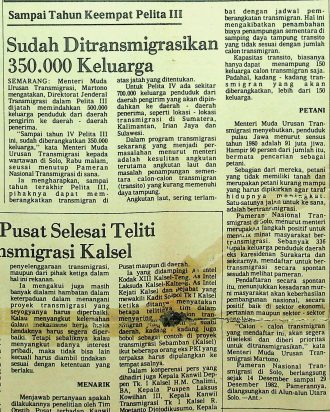Menteri Muda Urusan Transmigrasi, Martono mengatakan, Direktorat Jendral Transmigrasi dalam Pelita III dijatah memindahkan 500.000 keluarga penduduk dari daerah pengirim ke daerah-daerah penerima.Usai menutup Pameran Trasmigrasi di Solo ia menagtakan, “sampai tahun IV Pelita III ini, sudah diberangkatkan 350.000 keluarga.”