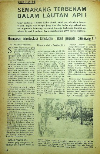 Dalam melawan NEKOLIM, pemuda Semarang melawan tentara Kidoo Butai Jepang yang ditunggangi kolonialis Sekutu dan diboncengi Belanda yang hendak mencoba kembali menduduki Indonesia. Maka dari itu, pemuda Semarang membuat kotanya terbenam lautan api selama 5 hari 5 malam dengan menelan korban lebih dari 2000 jiwa manusia.