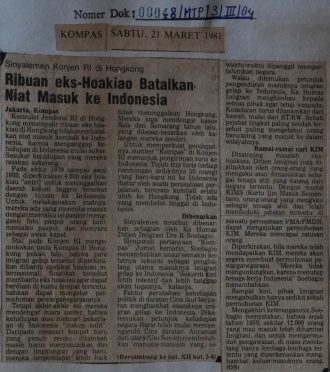 Konsulat Jenderal RI di Hongkong mensinyalir ribuan eks Hoakiau di Hongkong telah membatalkan niat masuk kembali ke Indonesia karena menganggap kehidupan di Indonesia mulai sukar. Hal tersebut dibenarkan oleh Ka Humas Ditjen Imigrasi, Drs. R Soebagio yang mengungkapkan bahwa semakin ketatnya sekuriti sebagai penghalang masuknya imigran gelap ke Indonesia.