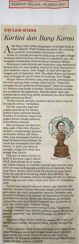Pada 2 Mei 1964, Presiden Soekarno mengeluarkan Keputusan Presiden Nomor 108 Tahun 1964, yang menetapkan Kartini sebagai Pahlawan Kemerdekaan Nasional.