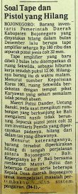 Barang inventaris Pemerintah Daerah Kabupaten Bojonegoro yang dinyatakan hilang pada bukan Desember 1982, berupa tape amplifier seharga Rp 180 ribu dan sepucuk pistol jenis colt 32 mm