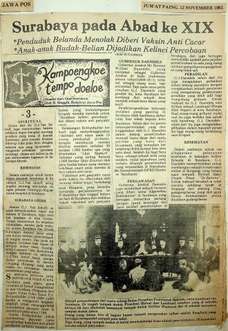 Salah satu peristiwa penting yang terjadi di kota Surabaya pada waktu pemerintah F.J. Rothenbuhler tahun 1799-1809 adalah ketika ia mengambil langkah-langkah untuk menganggulangi menjalarnya penyakit cacar di daerah bagian timur pulau Jawa pada 1799.