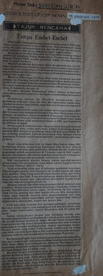 Presiden Soeharto kurang setuju dengan sebutan WNI keturunan asing bagi warga negara Indonesia yang mempunyai darah asing. Presiden menganjurkan agar mereka disebut saja warga negara Indonesia atau orang Indonesia tanpa embel-embel.