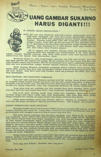 Mengingat sudah bergantinya presiden dan keadaan ekonomi serta keuangan negara yang semakin tidak sehat, terutama semakin merosotnya nilai rupiah, sehingga secara bijaksana perlu mengganti uang series Soekarno dengan uang series baru.