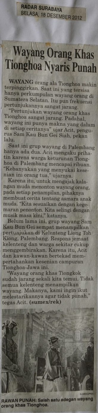 / Wayang Orang Khas Tionghoa Nyaris Punah